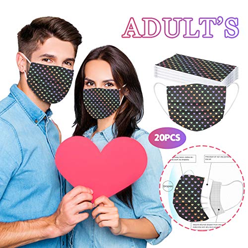 Specification: 20Pcs Valentines Day Disposable Face_Mask Love Heart Màsk Disposable for Adult Women Men Holiday Facemask Breathable 3Ply Protective Covering Face Protection
