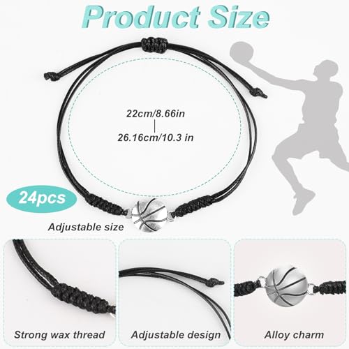 24pcs Basketball Bracelets, Adjustable Basketball Player Bracelet Hand Braided Rope Basketball Charm Bracelet Unisex Sport Jewelry Accessories for Women Men Teens Girls Boys Kids Team Coaches