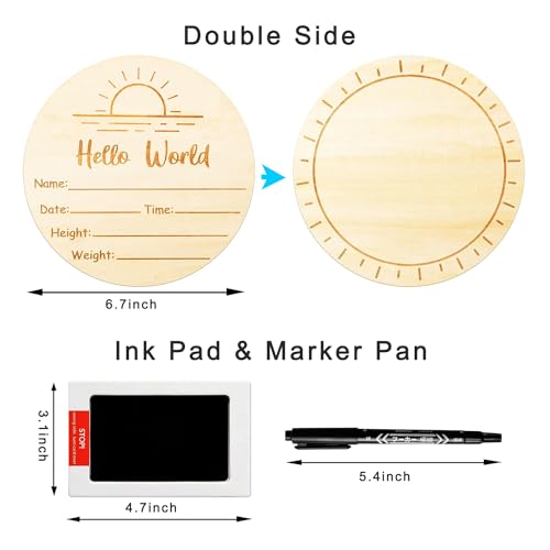 Specification: 5.9″ Hello World Baby Sign,Baby Announcement Sign|Not Bleed on Wood Marker Pen| Ink Pad, 2 Sided Boho Sun Newborn Announcement Sign for Nursery Hospital Baby Shower Keepsake, Newborn Essentials
