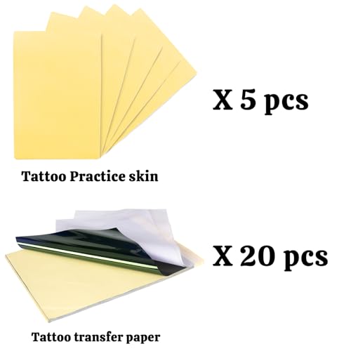 Specification: 5 Pcs 3mm 12” x 8” Fake Tattoo Practice Skin with 20 Pcs Transfer Paper Stencil for Microblading and Tattoo Kits Accessories, Thick, Flexible, Durable, Ideal Supplies for Tattooing Beginners