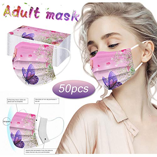 Specification: 50Pack Face Masks for Women Butterfly Leaf Floral Print Covering Skin Care Disposable Breathable 3 Ply Filter Adult