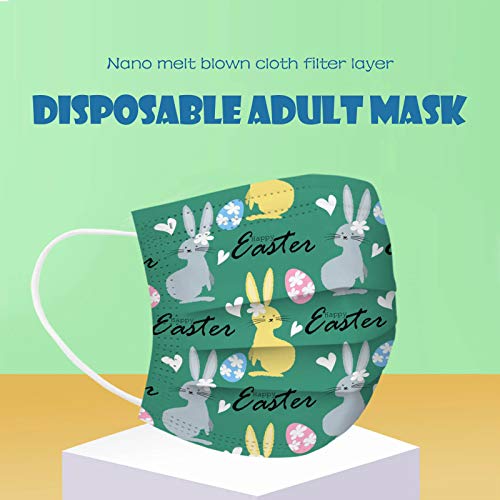 Specification: 50PC Adults Easter Disposable_Face_Mask 3 Ply for Men Women Easter Rabbit Eggs Theme Printed Face_Covering,Breathable Safety Protective Bandanas