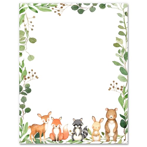 AnyDesign 60 Sheets Baby Shower Stationery Letterhead Paper Woodland Forest Animal Letter Paper Writing Paper Notes for Birthday Invitation Printing, 8.5 x 11 Inch, Single-Sided