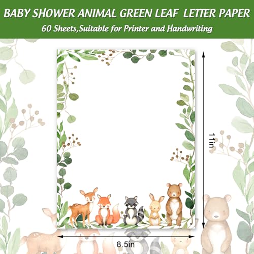 Specification: AnyDesign 60 Sheets Baby Shower Stationery Letterhead Paper Woodland Forest Animal Letter Paper Writing Paper Notes for Birthday Invitation Printing, 8.5 x 11 Inch, Single-Sided