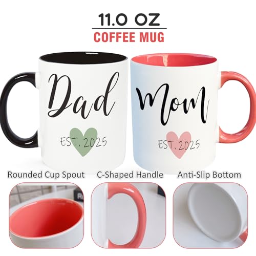 CINHOLL New Parents Gifts Mom and Dad Est 2025 Mugs for Couples Frist Time Expecting Mommy and Daddy Fathers Mothers Day Birthday Christmas Pregnancy Baby-Shower Present, 11oz