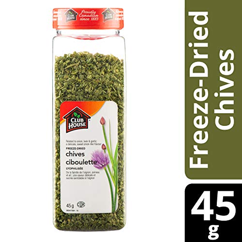 Specification: Club House Freeze-Dried Chives, Kosher, Vegetarian, Delicate Sweet Onion-Like Flavour, Great Addition For Roasts, Potatoes, Dips, Salad Dressings, And Breakfast Food Like Eggs & Cream Cheese, 45G