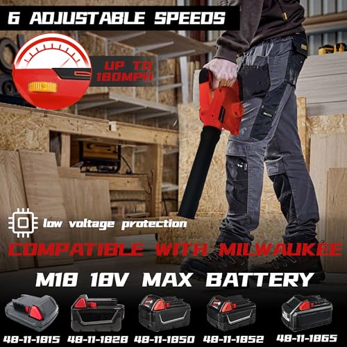 Specification: Cordless Leaf Blower for Milwaukee M18 Battery,2-in-1 Handle Electric Blower + Vacuum Cleaner, 6 Variable Speed Up to 180MPH,Electric Jobsite Air Blower with Brushless Motor (Only Tools)