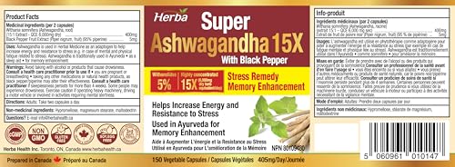 Specification: Herba Ashwagandha Supplement – 150 Capsules | 6000mg Per Day | 15:1 Extra Strength Ashwagandha Capsule with Black Pepper | Adaptogen for Energy & Stress | Made in Canada