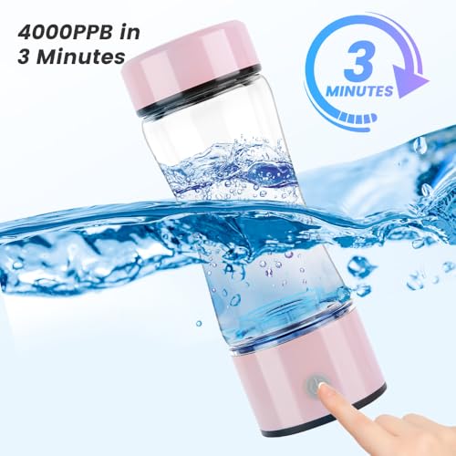 Specification: Hydrogen Water Bottle Generator, Portable Hydrogenated Water Ionizer Machine, Ion Bottles with SPE PEM Technology, Electrolysis 4000 PPB Water, Hydroh Health Hydrowave Lifewater, Hydro(Sakura Pink)