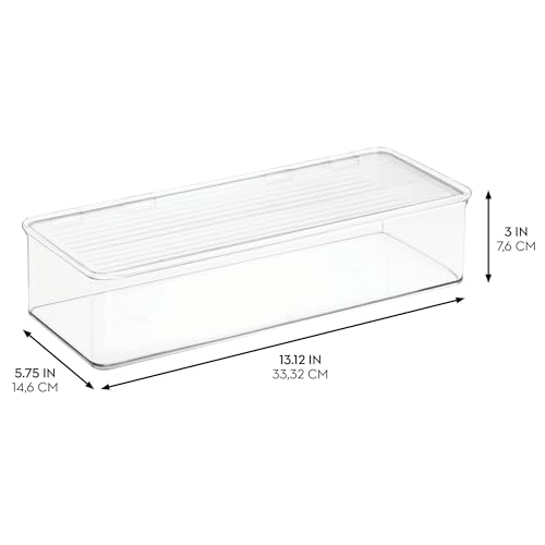 STACKABLE DESIGN– These stackable, space-saving lidded storage bins keep clutter under control by conveniently storing an assortment of kitchen essentials; Storage bins stack vertically, allowing you to use multiple units together for custom storage while conserving space; Combine with other iDesign Lidded Storage Bins to create a more thoughtful space for how you live; Versatile and easy to transport, these bins also organize craft rooms, bathrooms, closets, garages, playrooms, and more