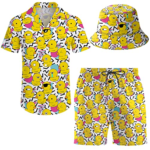 ifamawlea Men’s 2 Piece Tracksuit Hawaiian Shirt Shorts Button Down Shirt and Shorts Sets with Bucket Hats