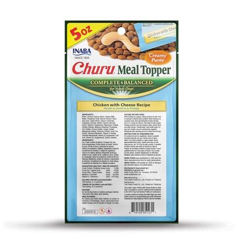 Specification: INABA Churu Meal Topper for Dogs, Complete & Balanced, Creamy, Lickable Purée Dog Food Toppers, 1.69 Ounce Tube, 18 Tubes (3 per Pack), Chicken with Cheese Recipe