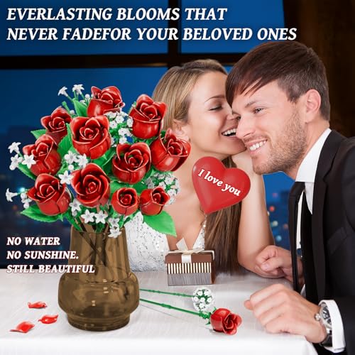 Specification: INVITOP Red Rose Flowers Bouquet Building Set, 15 Artificial Flowers for Botanical Collection and Decorative Home, Forever Rose Toy Valentine’s DIY Gift for Women Girls Her Adults 6+, No Vase