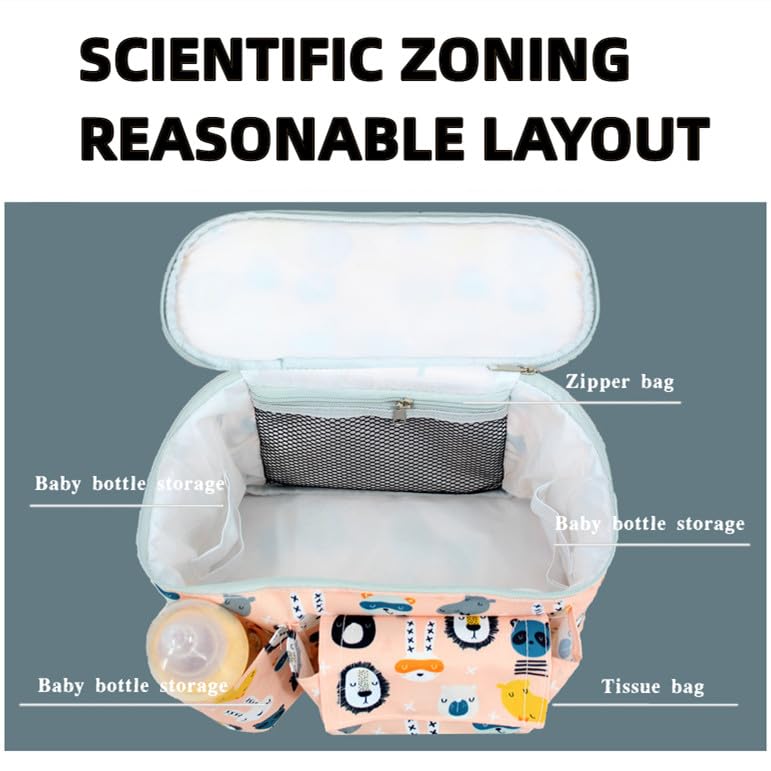 Specification: Large Capacity Baby Strollers Hanging Bag Cartoon Animal Print Travel Diaper Bag Organiser Storage Bag with Multiple Pockets