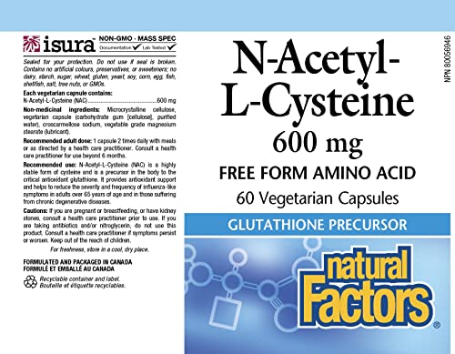 Specification: Natural Factors N-Acetyl-L-Cysteine 600 mg Free Form Amino Acid, 60 Caps
