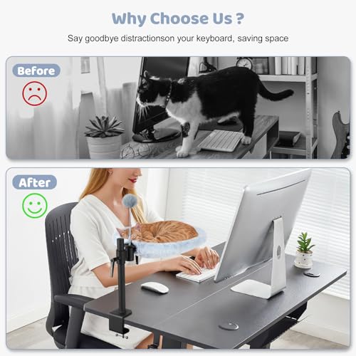 360° Swivel & Adjustable Desk Cat Perch: The desk cat perch spins 360° and lets you adjust the height, so you can move it around to keep your cat happy and entertained while you focus on your tasks.