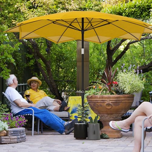 Specification: Outsunny 8.5FT Parasol with 10 Ribs, Flower-shaped Market Umbrella Outdoor with Crank Handle, Air Vents, Tilting Parasol for Garden and Pool, Yellow