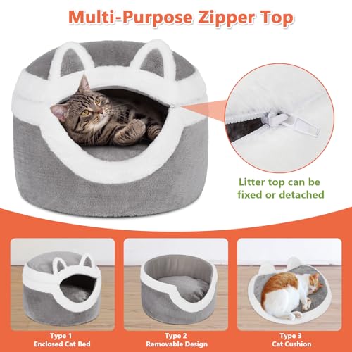 Ownpets Multifunctional Detachable Cat Bed, 3-in-1 Design, Year-Round Comfort, Soft Rabbit Velvet Cat House for Cats Under 17 lbs