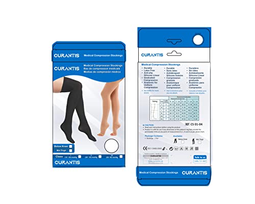 Specification: Premium CURANTIS Graduated Medical Compression Mid Thigh Stockings for Men and Women – Class 1 (18-21 mmHG) Socks Pair for varicose veins, Maternity, Nurses, Travel, Flight, Sports – (X-Large) Beige