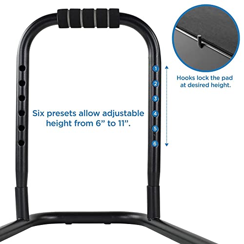 With its easy height adjustment capabilities, this steel standing work footrest is ideal for warehouses, backrooms and other industrial-type settings. The black powder coat finish gives the item durability to help prevent scratches, allowing it to also be used in front office applications such as work stations, private offices, meeting areas and any other space where standing desks are used.