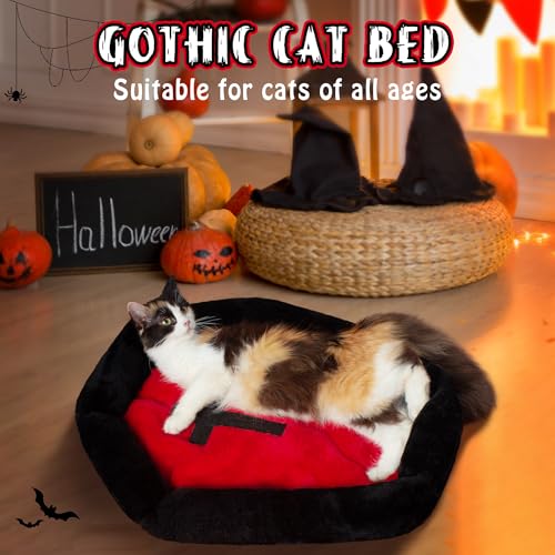 Gothic Design:The use of black and red high quality plush fabric makes the whole cat bed look darker and more elegant. This is a cozy cat furniture and a unique Halloween home decoration