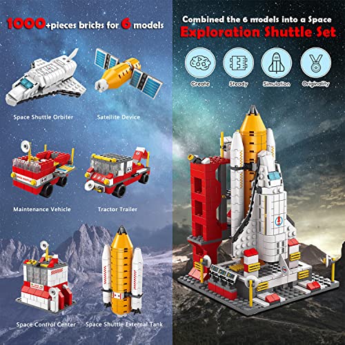 Valued Building Toys: This space shuttle toys included 1000+ smooth building blocks, and can be assembled into 6 outer space models; Tractor Trailer, Maintenance Vehicle, Space Shuttle External Tank, Satellite Device, Space Control Center & Shuttle Orbiter. Furthermore, you can combine all 6 models into a space exploration shuttle set. It’s a process of using the same parts in different combinations to create something new, can help children think and desgin.