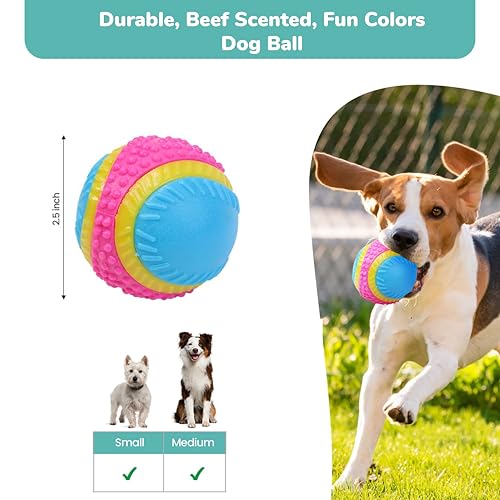 The sensory ball rubber dog toy has something for all 5 senses (sight, sound, smell, touch, and taste) and is made from a durable TPR rubber.
