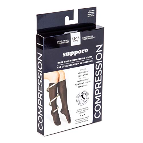 DESIGN & COMFORT- Supporo knee-high stockings are designed to improve circulation, while relieving tired legs, preventing minor swelling in the feet, ankles and legs, and reducing the risk of minor varicose veins.