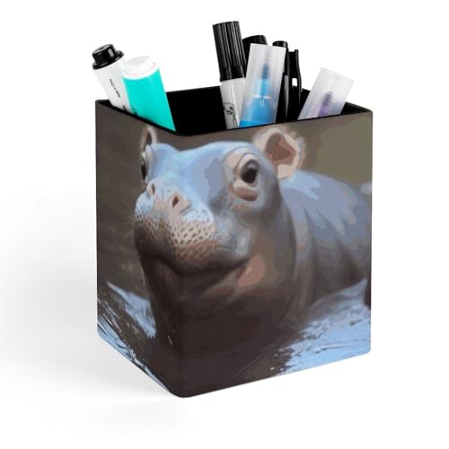 Specification: VTCTOASY Baby Hippos Leather Pen Holder Desk, Pencil Cup Makeup Brush Holder Desktop Organizer Storage Case Stationery for Home Office Supplies