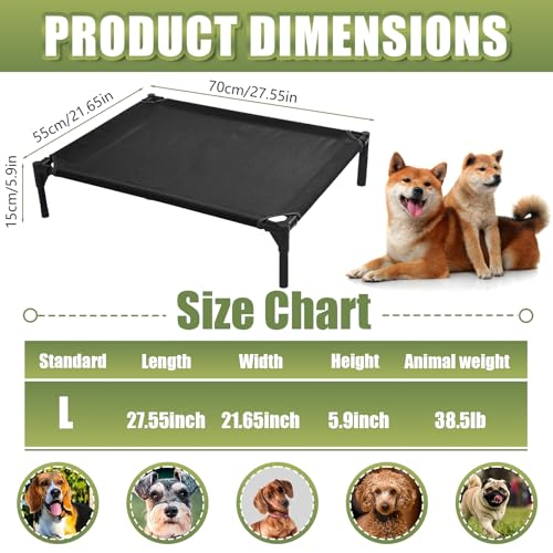 Specification: YAUYAP Elevated Dog Bed with Breathable Mesh – Raised Dog Cot for Small, Medium, Large Dogs, Outdoor & Indoor Use, Easy to Clean, Black, 27.56 x 21.65 x 5.91inch