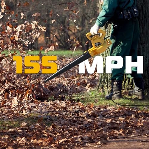 POWERFUL POWER: The electric leaf blower is powerful, in the strongest mode it can reach the wind speed of 350 CFM and the airflow of 155 MPH, with the push of a button to start the corded leaf blower, you will get the maximum wind speed to help you get the job done quickly.